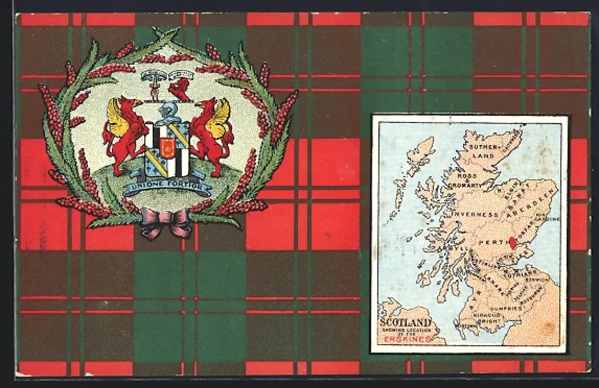 Künstler-AK Map of Scotland with a Perth Coat of Arms