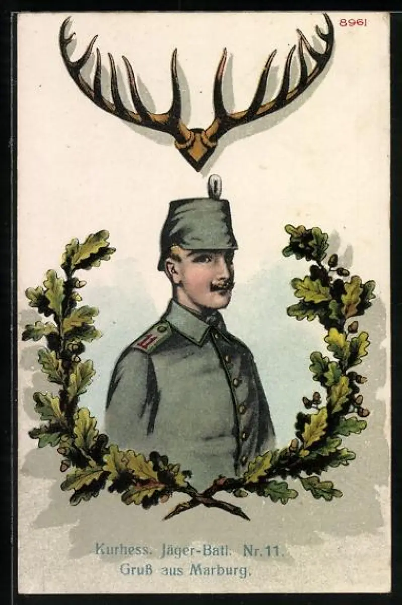 Künstler-AK Marburg, Kurhess. Jäger-Batl. Nr. 11, Soldat in Uniform
