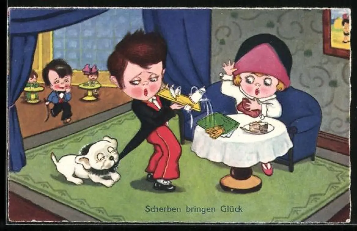 Künstler-AK Margret Boriss: unsign. Scherben bringen Glück