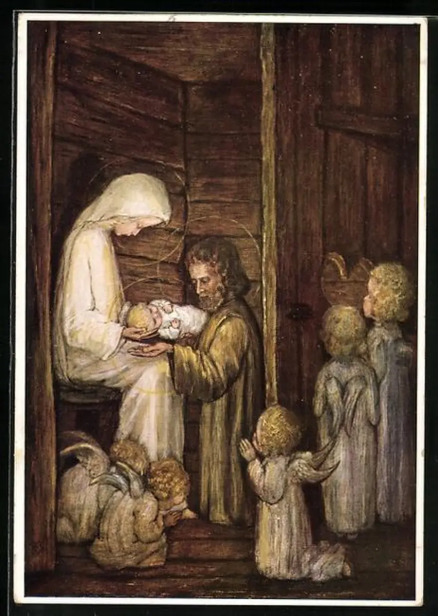 Künstler-AK Maria Spötl: Heilige Familie mit Engeln