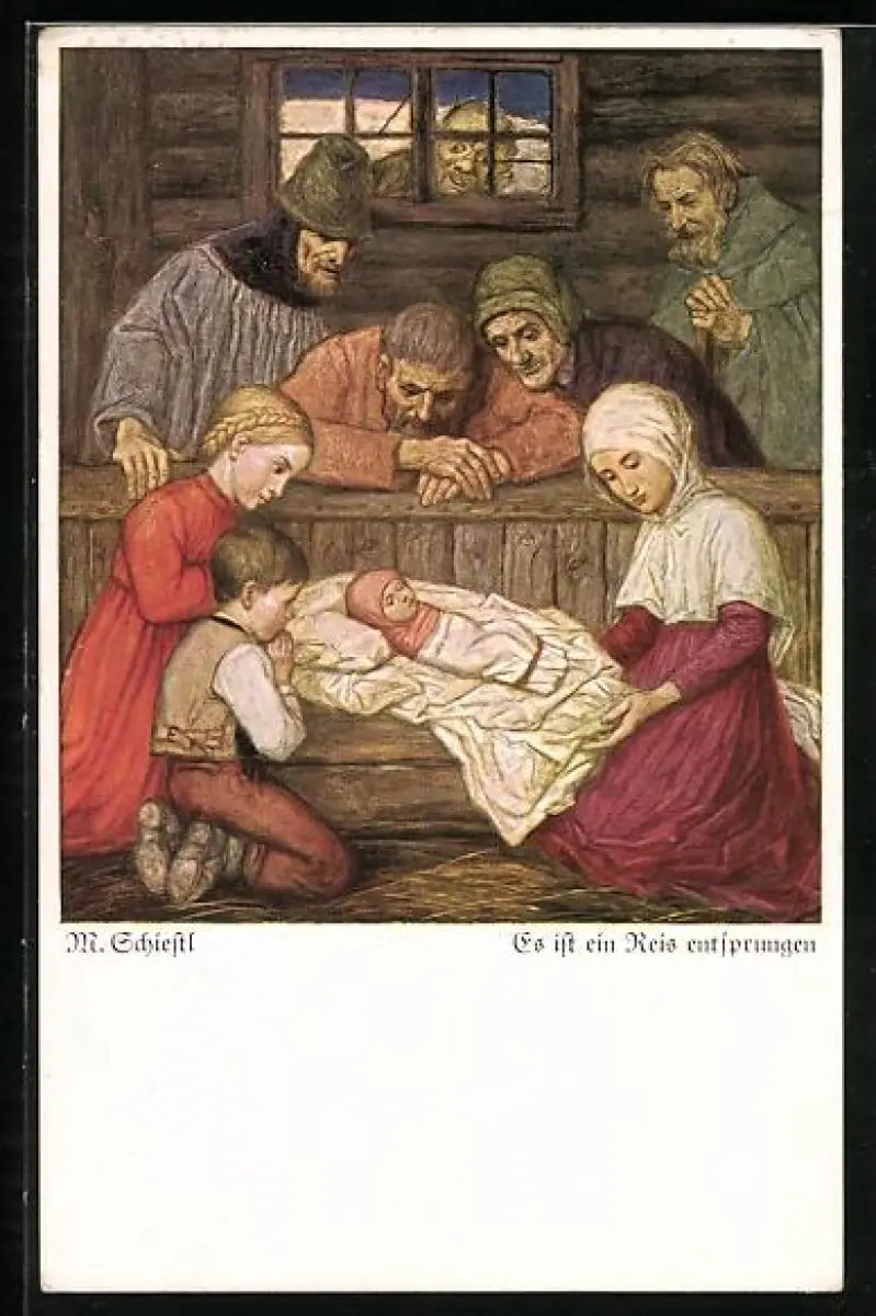 Künstler-AK Matthäus Schiestl: Es ist ein Reis entsprungen, im Stall zu Bethelehem