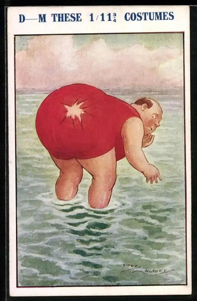 Künstler-AK Maurice: Badeanzug eines Mannes reisst beim Bücken