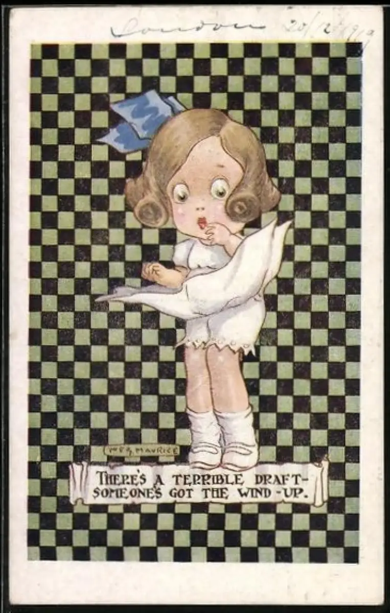 Künstler-AK Maurice: Wind weht den Rock eines Mädchens nach oben