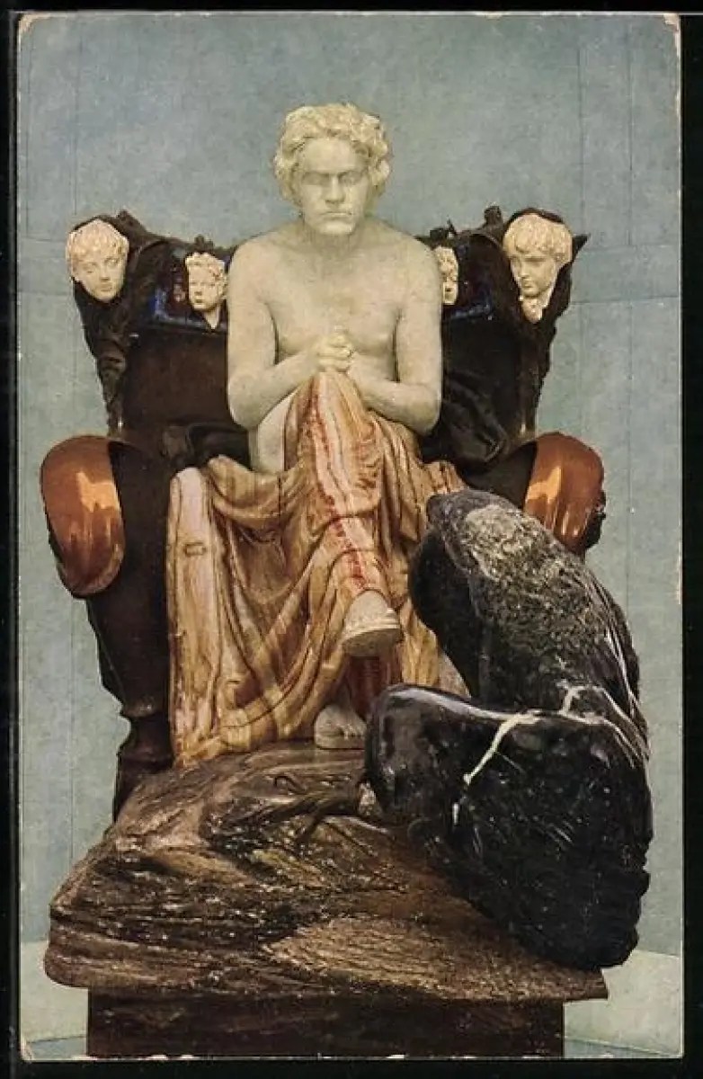 Künstler-AK Max Klinger: nackter Beethoven auf einem Sessel mit Tuch bedeckt