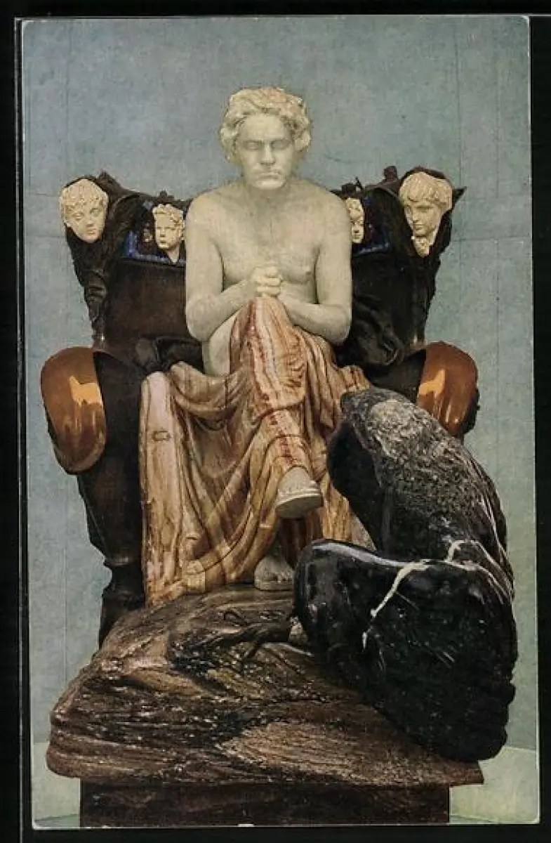 Künstler-AK Max Klinger: nackter Beethoven mit Tuch bedeckt auf einem Sofa