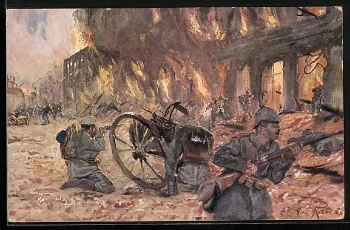 Künstler-AK Max Rabes: Strassenkampf in Hohenstein