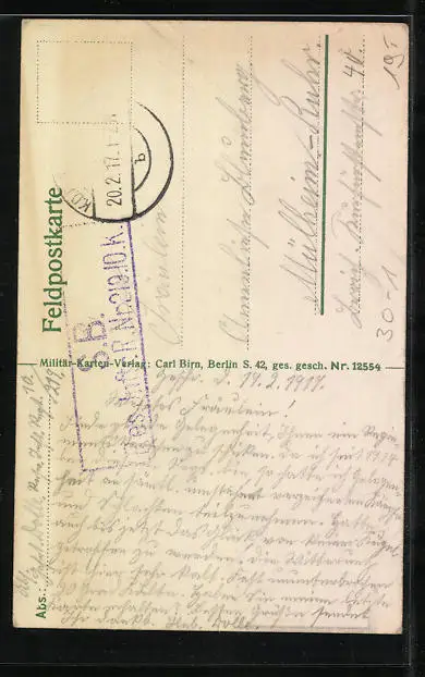 alte Ansichtskarte, gelaufen 1917 als Feldpost, guter Zustand