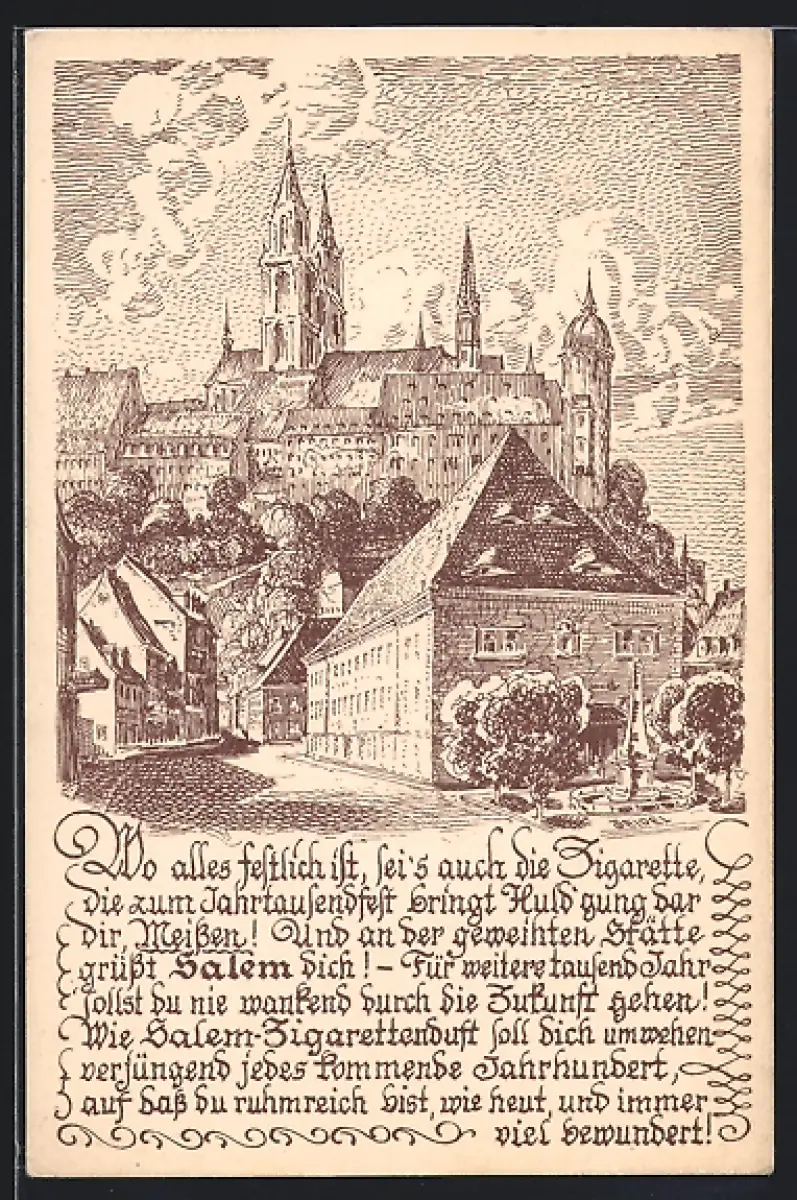 Künstler-AK Meissen, Salem Auslese, die Fest-Zigarette zur Jahrtausendfeier