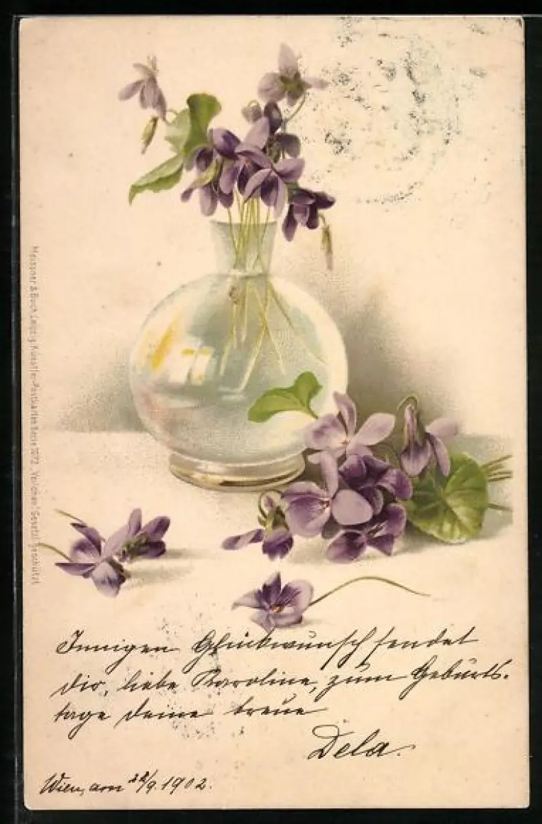 Künstler-AK Meissner & Buch (M&B) Nr. 1072: Veilchen in einer Vase