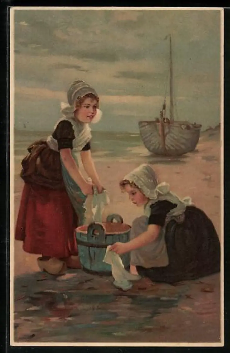 Künstler-AK Meissner & Buch (M&B) Nr. 1375: Von Haus und Herd, Waschmädchen