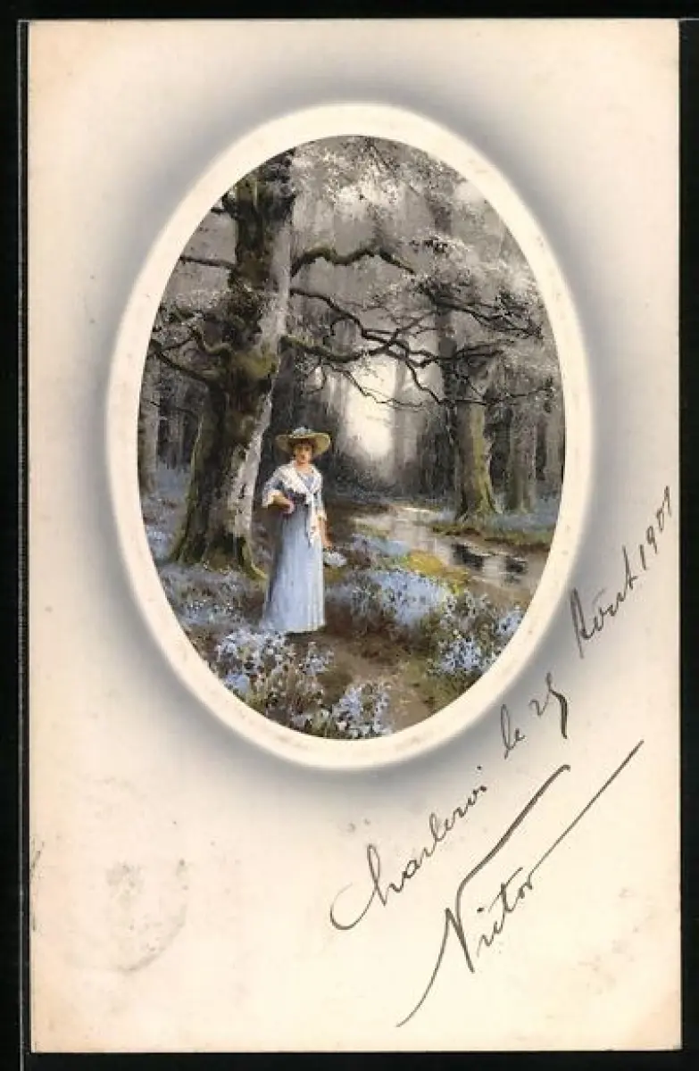 Künstler-AK Meissner & Buch (M&B) Nr. 1555: Frau im Kleid im Wald