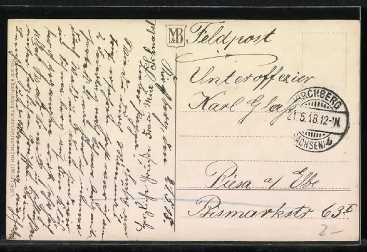 alte Ansichtskarte, gelaufen 1918, Stempelspur, guter Zustand