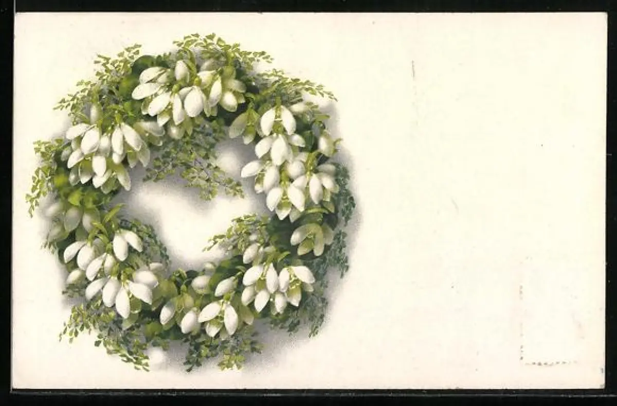 Künstler-AK Meissner & Buch (M&B) Nr. 2371: Grüner Kranz mit Schneeglöckchen