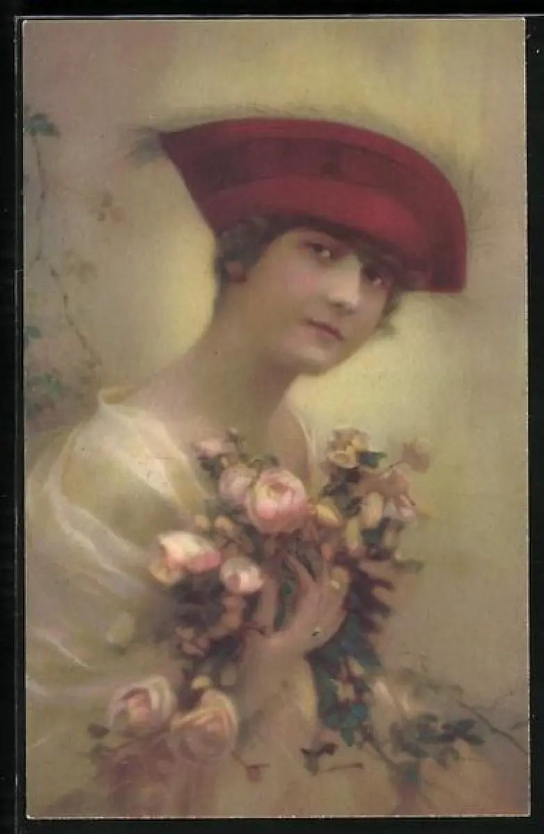 Künstler-AK Meissner & Buch (M&B) Nr. 2526: Dame mit Hut und Rosen