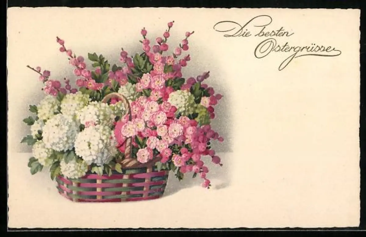 Künstler-AK Meissner & Buch (M&B) Nr. 2678: Blumen in einem Spankorb, Ostergruss