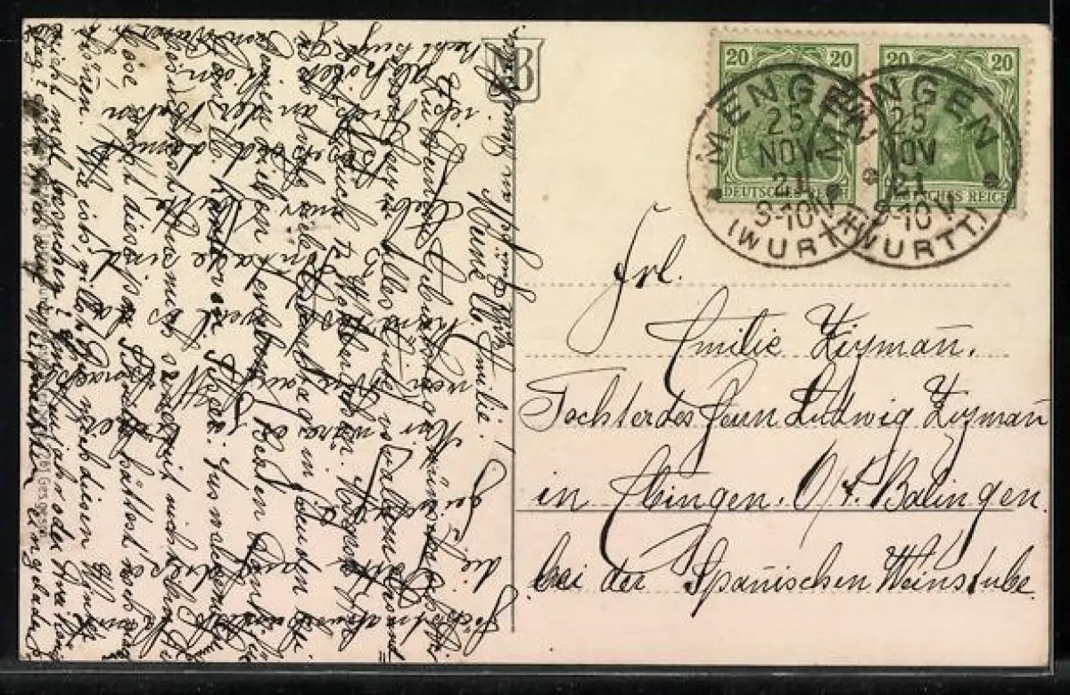 gelaufen 1921, Pinloch oben li., guter Zustand