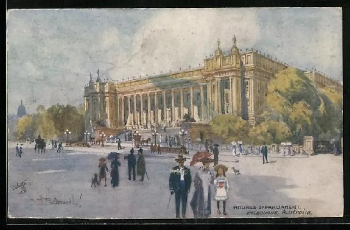 Künstler-AK Melbourne, Houses of Parliament