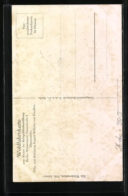 Personenbezogene Daten auf der Rückseite der Karte wurden durch blauen Textmarker unkenntlich gemacht. Die blauen Stellen sind auf die Vorderseite durchgeweicht und wirken sich negativ auf das Postkartenfoto aus