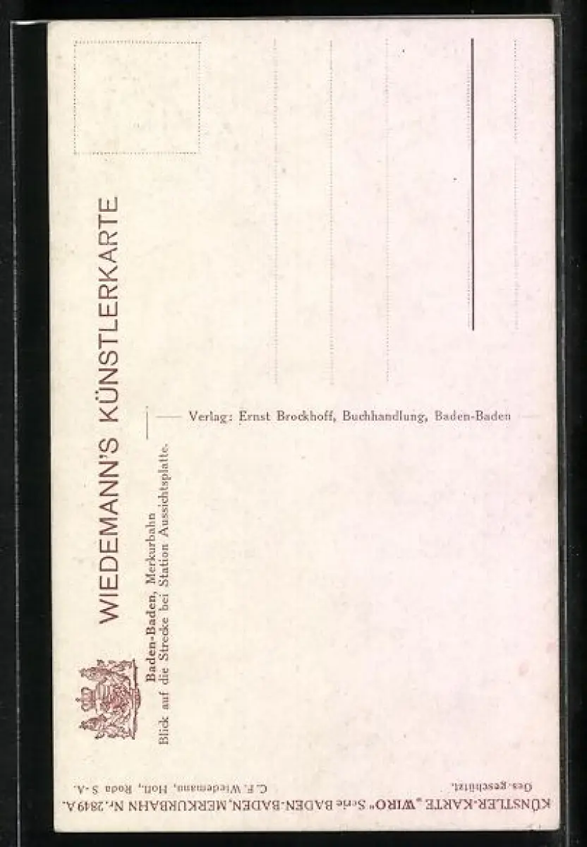 Künstler-AK Merkurbahn /Baden-Baden, Blick auf die Strecke bei Station Aussichtsplatte
