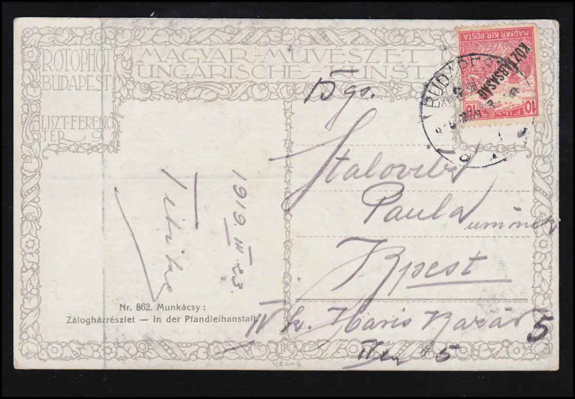 Künstler-AK Mihaly von Munkacsy: In der Pfandleihanstalt, BUDAPEST 23.3.1919
