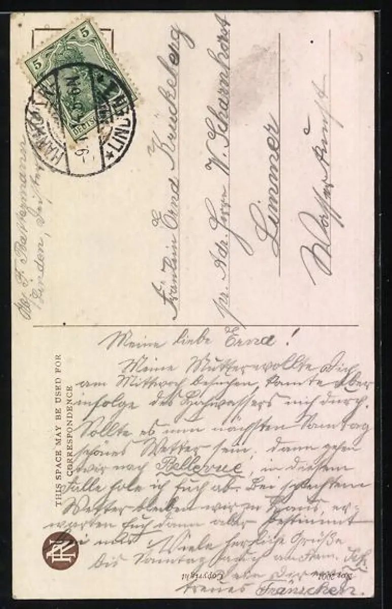 alte Ansichtskarte, gelaufen 1914, Einriss, Bugspur li. oben, guter Zustand