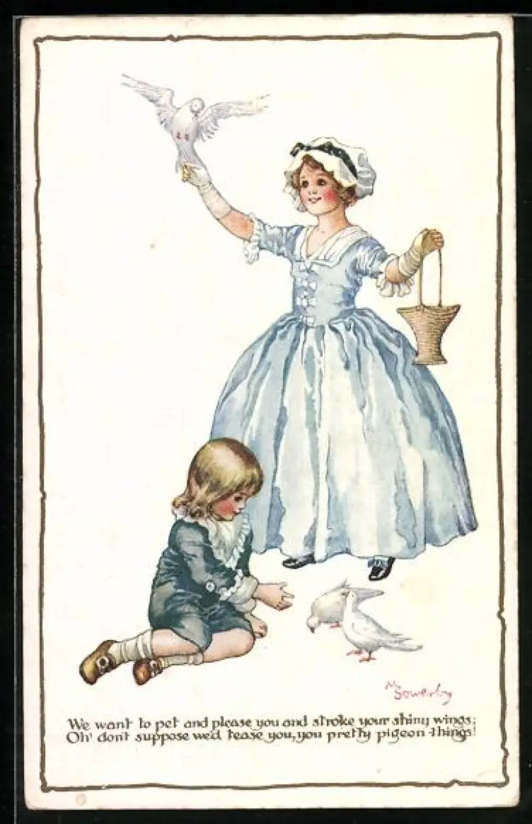 Künstler-AK Millicent Sowerby: Spielende Kinder mit weissen Tauben