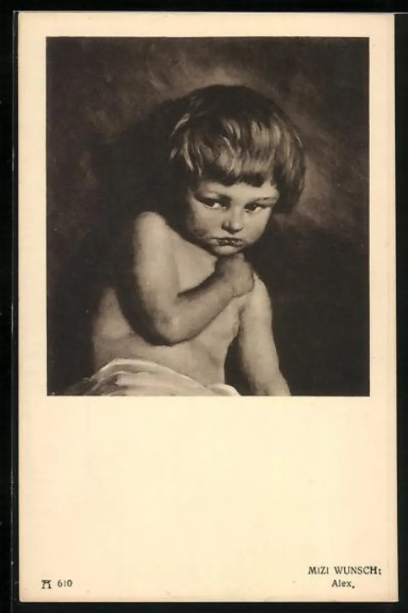 Künstler-AK Mizi Wunsch: Schüchterner Junge schaut seitlich
