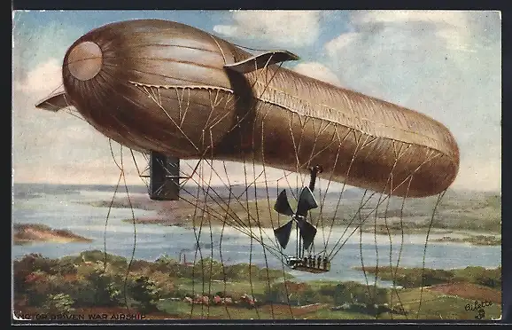 Künstler-AK Motor-driven War Airship, Luftschiff, Zeppelin