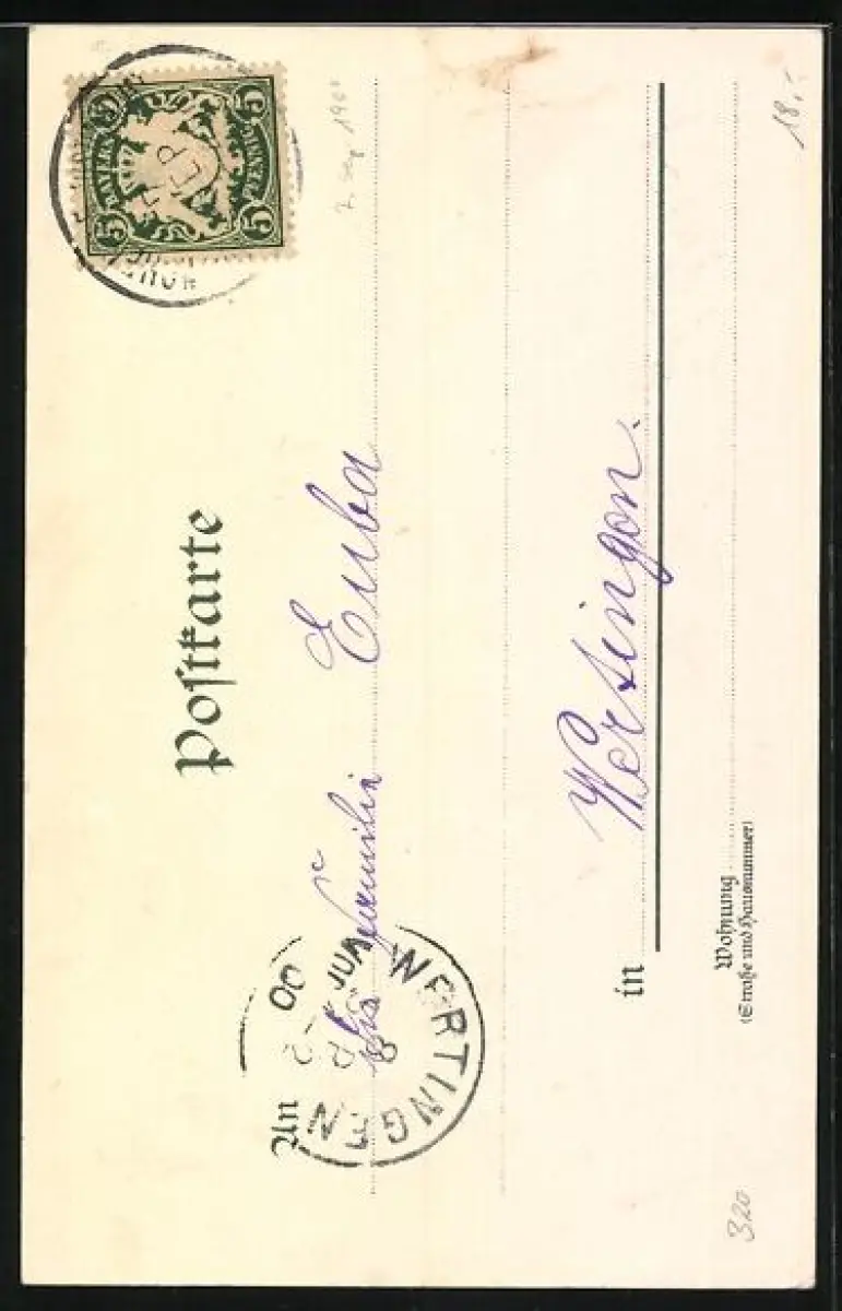 alte Ansichtskarte, gelaufen 1900, Stempelspur, guter Zustand