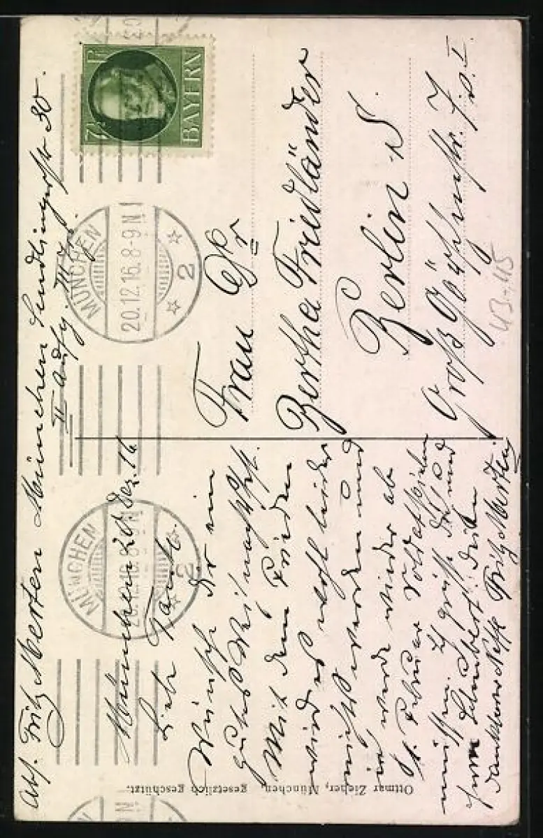 alte Ansichtskarte, gelaufen 1916, Eckknick li. unten, Abriebspuren li. oben, guter Zustand