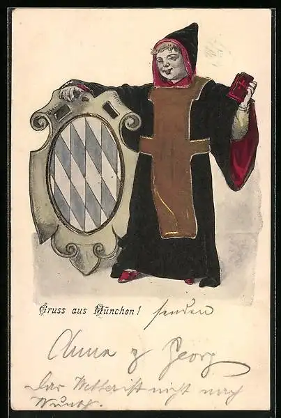 Künstler-AK München, Münchner Kindl mit Bayrischem Wappen