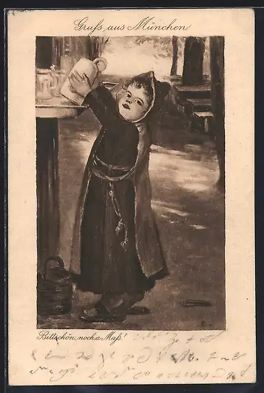 Künstler-AK München, Münchner Kindl mit einem Bierkrug