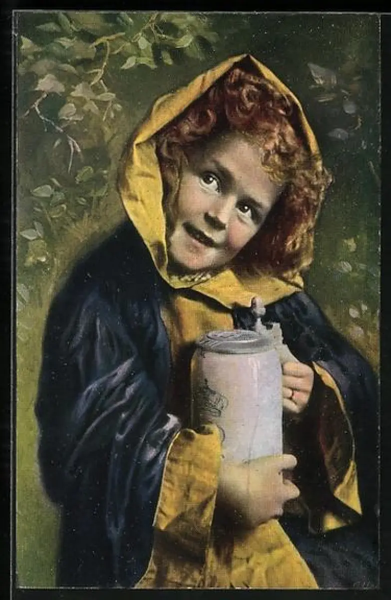 Künstler-AK Münchner Kindl mit Bierkrug in der Hand