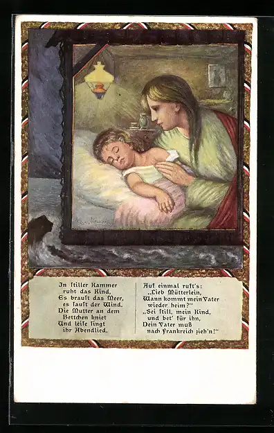 Künstler-AK Mutter wacht über den Schlaf ihres Kindes, Spruch