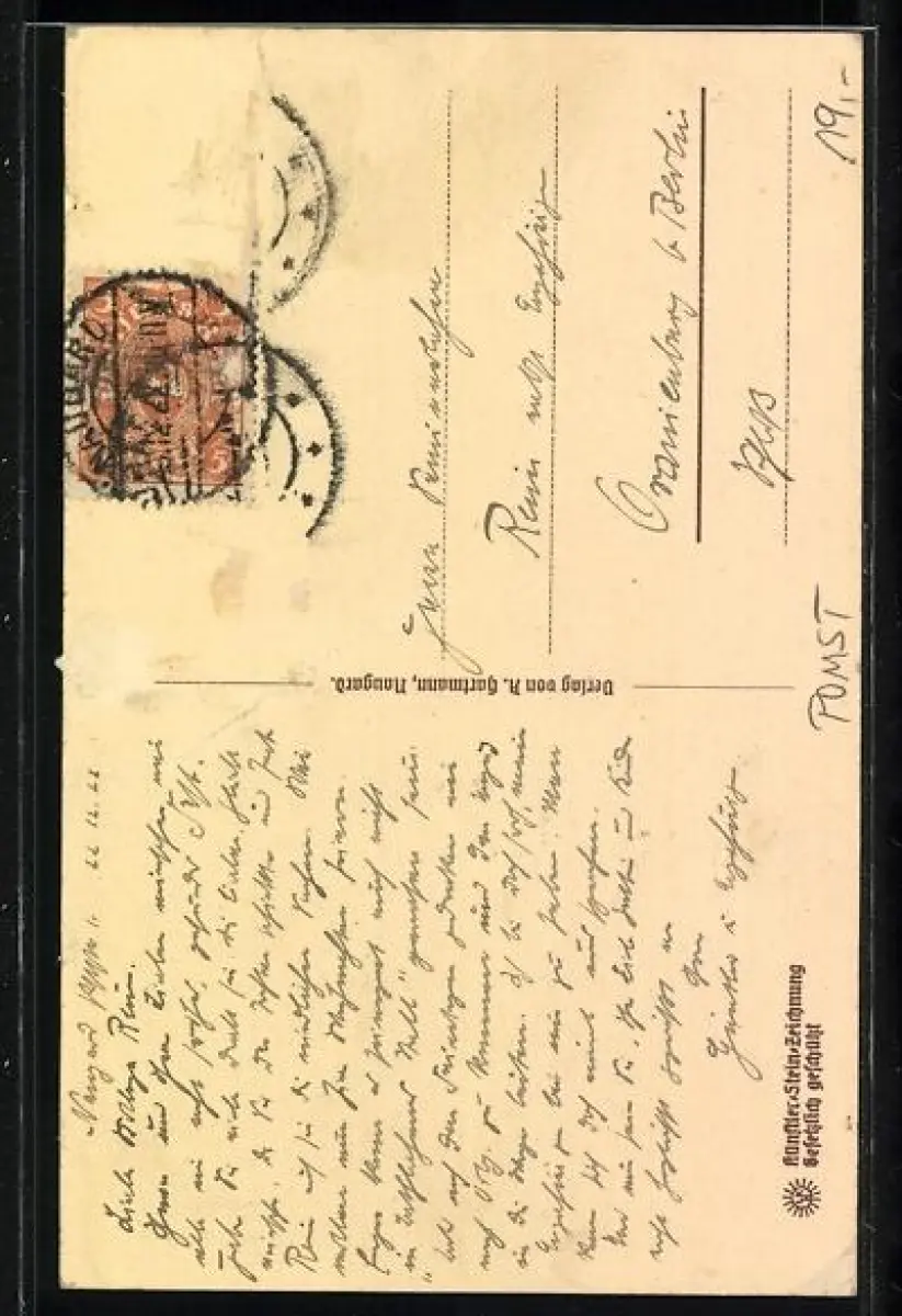 alte Ansichtskarte, gelaufen 1922, Briefmarke entfernt, rückseitig Oberflächenschaden, Bugspur re. mittig, guter Zustand