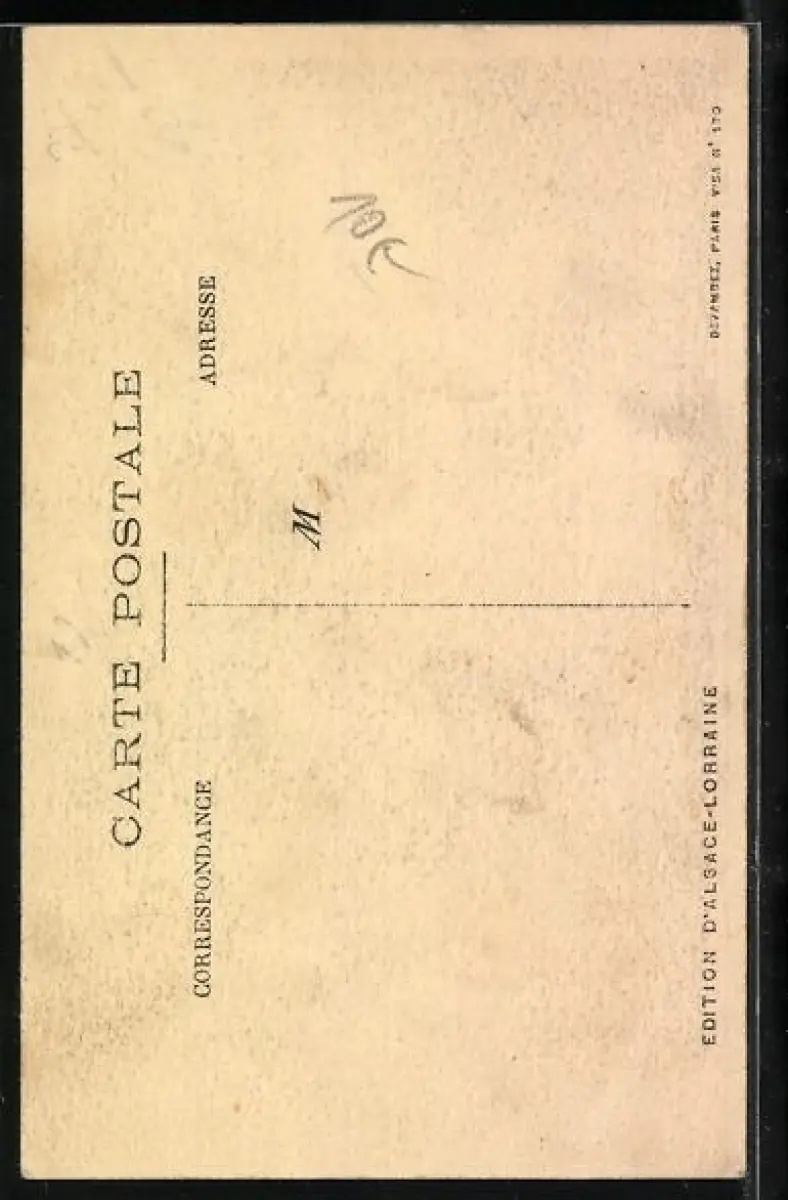 Personenbezogene Daten auf der Rückseite der Karte wurden durch blauen Textmarker unkenntlich gemacht. Die blauen Stellen sind auf die Vorderseite durchgeweicht und wirken sich negativ auf das Postkartenfoto aus