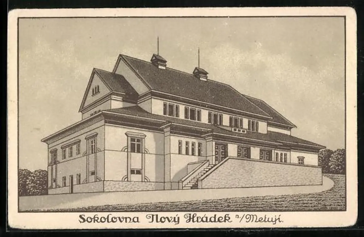 Künstler-AK Nový Hrádek n. Metují, Sokolovna