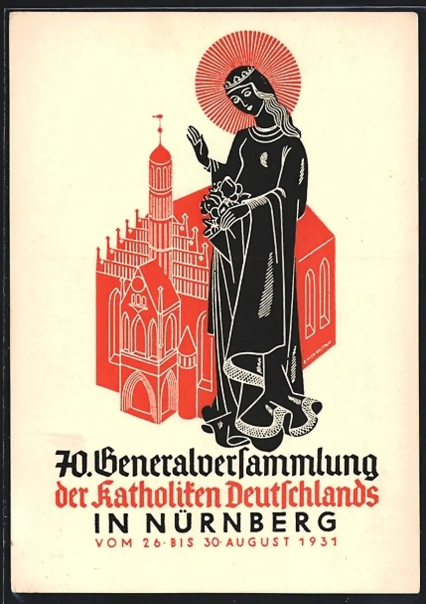Künstler-AK Nürnberg, 70. Generalversammlung der Katholiken Deutschlands 1931, Kirche und Maria