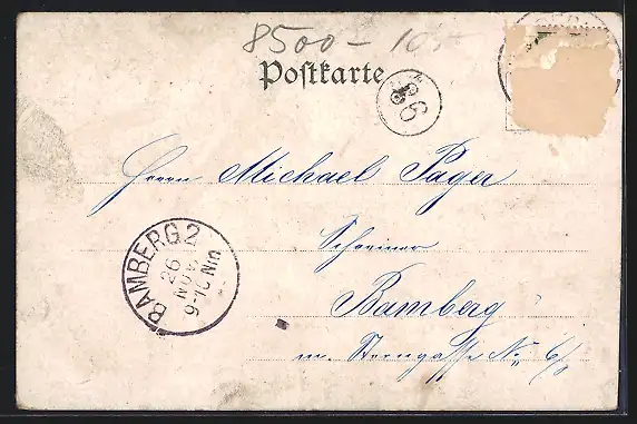 alte Ansichtskarte, gelaufen, Briefmarke entfernt, guter Zustand