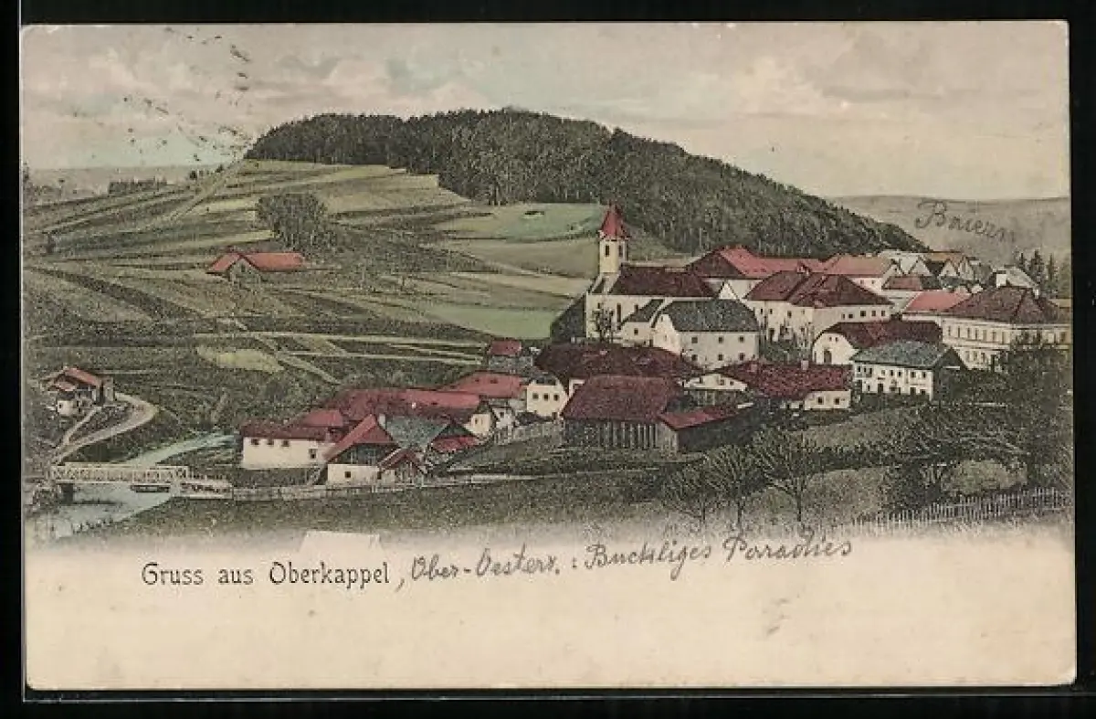 Künstler-AK Oberkappel, Teilansicht mit Kirche