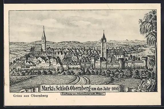 Künstler-AK Obernberg, Stadtansicht anno 1640