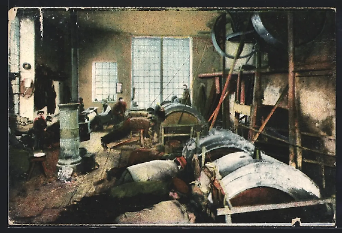 Künstler-AK Oberstein /Nahe, Arbeiter in einer Achatschleiferei