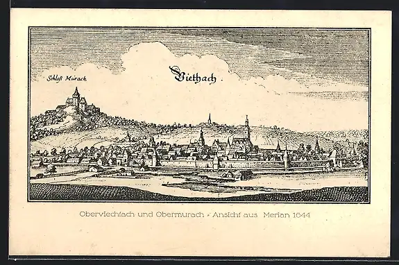 Künstler-AK Oberviechtach, Teilansicht mit Schloss Murach und Obermurach nach Merian 1644