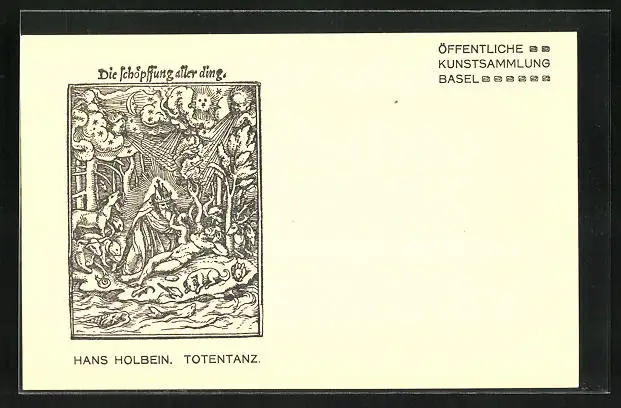 Künstler-AK Öffentliche Kunstsammlung Basel, Hans Holbein, Totentanz, Die Schöpffung aller ding