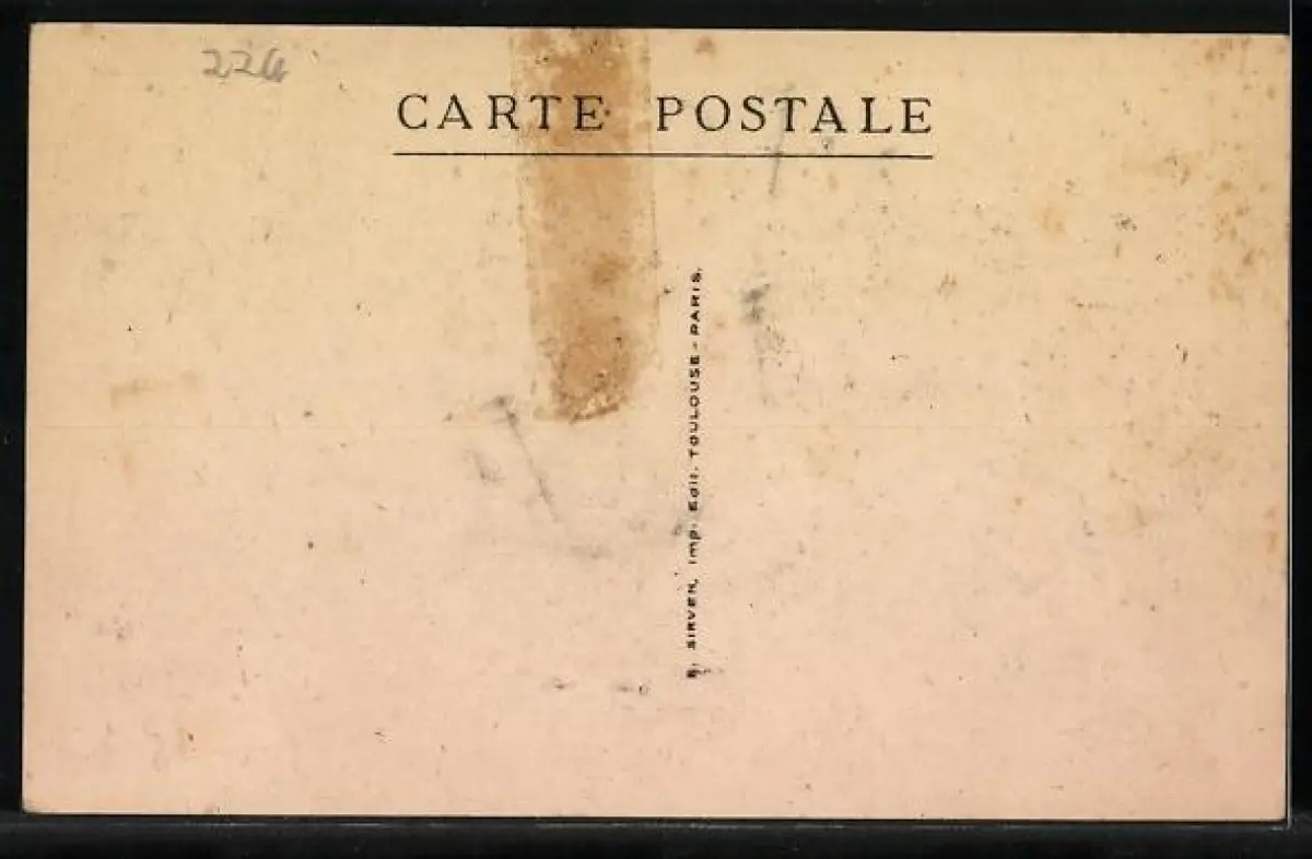 Personenbezogene Daten auf der Rückseite der Karte wurden durch blauen Textmarker unkenntlich gemacht. Die blauen Stellen sind auf die Vorderseite durchgeweicht und wirken sich negativ auf das Postkartenfoto aus