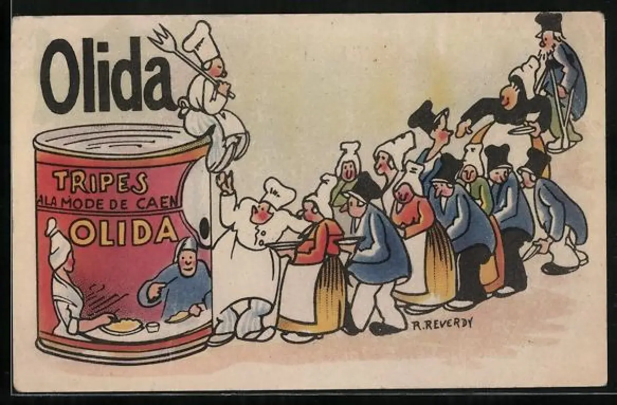 Künstler-AK Olida, Tripes à la mode de Caen, Konserven-Reklame