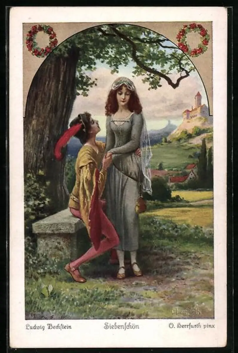 Künstler-AK Oskar Herrfurth: Siebenschön, 2. Durch seinen Diener bestellte er sie zur grossen Eiche...