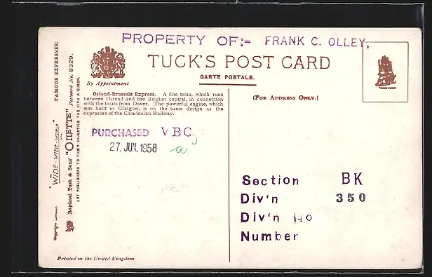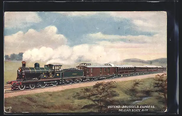 Künstler-AK Ostend-Brussels Express, Belgian State Rlys.