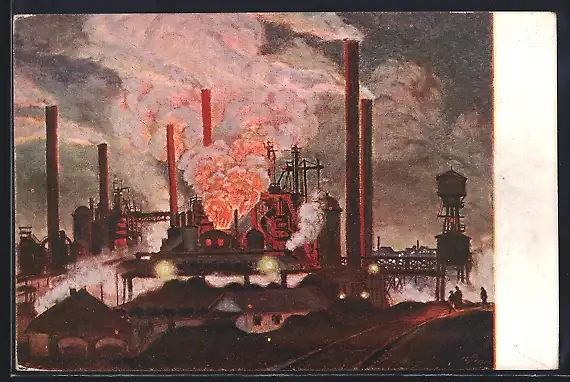 Künstler-AK Ostrava-Vítkovice, Ansicht einer Fabrik