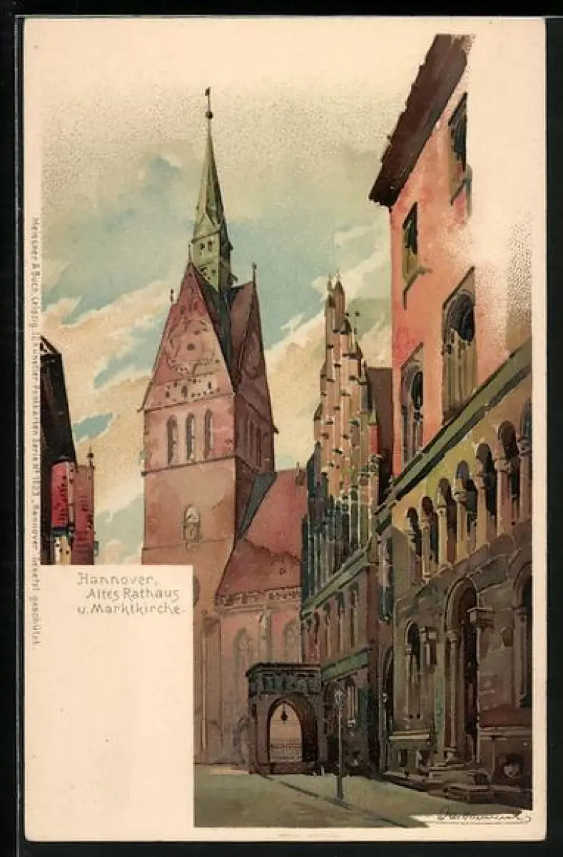 Künstler-AK Otto Hammel: Hannover, Altstadtpartie mit Marktkirche und altem Rathaus
